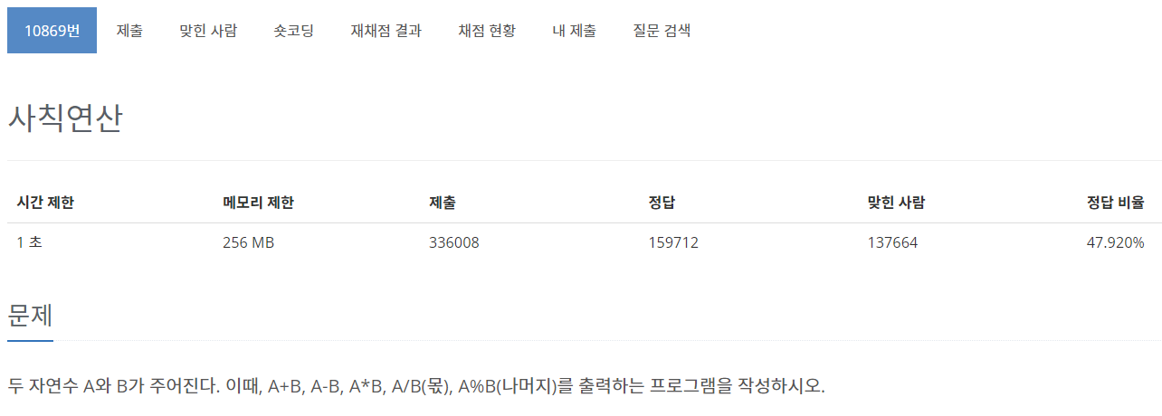 printf("%d\n%d\n%d\n%d\n%d",a+b,a-b,a*b,a/b,a%b);