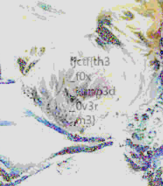 사진 파일을 선택하고 Hidden bits를 3으로 맞추었을 때 개의 얼굴에 무슨 글자가 써져있는 것을 확인할 수 있습니다. 이것을 크게 확대하면 flag가 나옵니다.