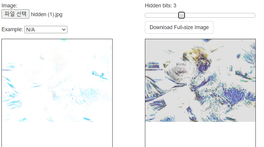 저는 Image Steganography라는 사이트를 이용하여 사진 화질을 바꾸면서 사진을 확인해보았습니다.